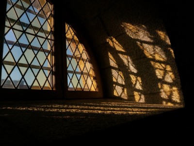 - Plein sud, donne sur la cour et les remparts, vitraux et meublé en rustique.
